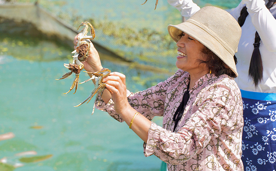 The crabs are raised in aquaculture area enclosed with nets in the lake and lakeside ponds. A total of 10,350 tons of crabs are expected to be harvested this year. The first batch of Yangcheng Lake hairy crabs are available in market from late this month to mid-October, and then about 6,000 tons will come into market from mid-October to mid-November and another 2,000 tons from mid-November to December.