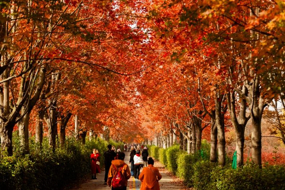 The Red Maple Grove, as the largest maple-viewing spot in SIP, is home to over 500 maple trees that are gradually turning fiery red.