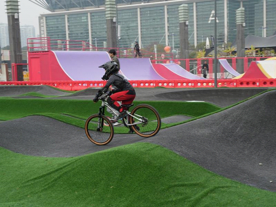 SIP buzzes with kinetic energy on weekends. In the Suzhou Velosolutions Pump Track Park, riders weave up and down the undulating pump tracks, painting vibrant streaks with their movements.