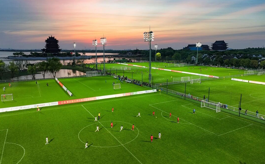 作為比賽場地的陽澄湖半島足球公園,設有6片飛盤場地,均采用達到國際足聯認證標準的11人制濱水真草場地。這里有國際足聯認證標準的真草,柔軟緩沖,保護每一寸奔跑的激情;優質的排水系統與平整度,雨天不積水,晴日不揚塵,全天候保障比賽流暢;優美的景觀設計,濱水而建,湖風拂面、綠意環繞,競技與自然在此完美融合……這里不僅是賽場,更是一片釋放熱情的飛盤樂園。