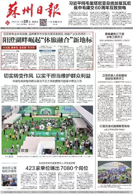 伴著新建元國際網球中心、陽澄湖半島足球公園等國際化場館落成投用,7月的陽澄湖畔,瀲滟的湖光與球場的藍紅交織成畫,折射出蘇州工業園區這片活力新城在“體育+文旅”融合之路上的堅實足跡——從專業賽事的喝彩到全民運動的歡騰,從硬件設施的國際標準到人文服務的細膩溫度,這里正以蓬勃的姿態,書寫著“城市讓生活更美好”的生動注腳。