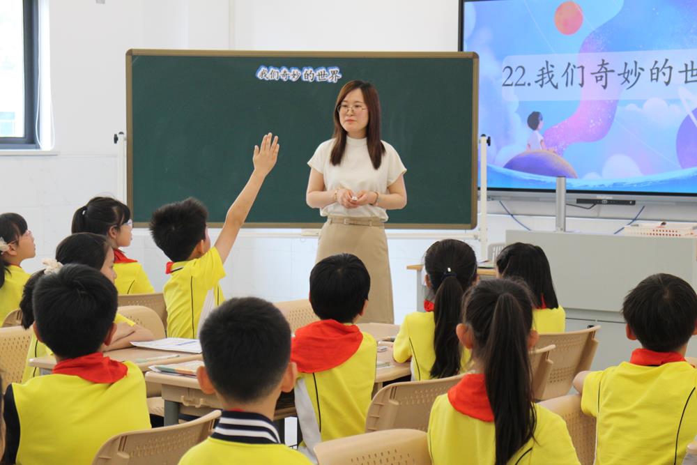 星港學校蔣林玲老師執(zhí)教的《我們奇妙的世界》,以“奇妙”為切入點,創(chuàng)設(shè)了“奇妙詞句發(fā)現(xiàn)家”、“天空探索家”和“天空珍藏家”三個情境任務(wù),引導(dǎo)學生感受自然之美,世界之奇。整節(jié)課,既有通過關(guān)鍵詞句理清課文結(jié)構(gòu),也有通過小組合作學習來探索不同事物平凡而獨特的美好,更有把文學閱讀與創(chuàng)意表達結(jié)合起來。