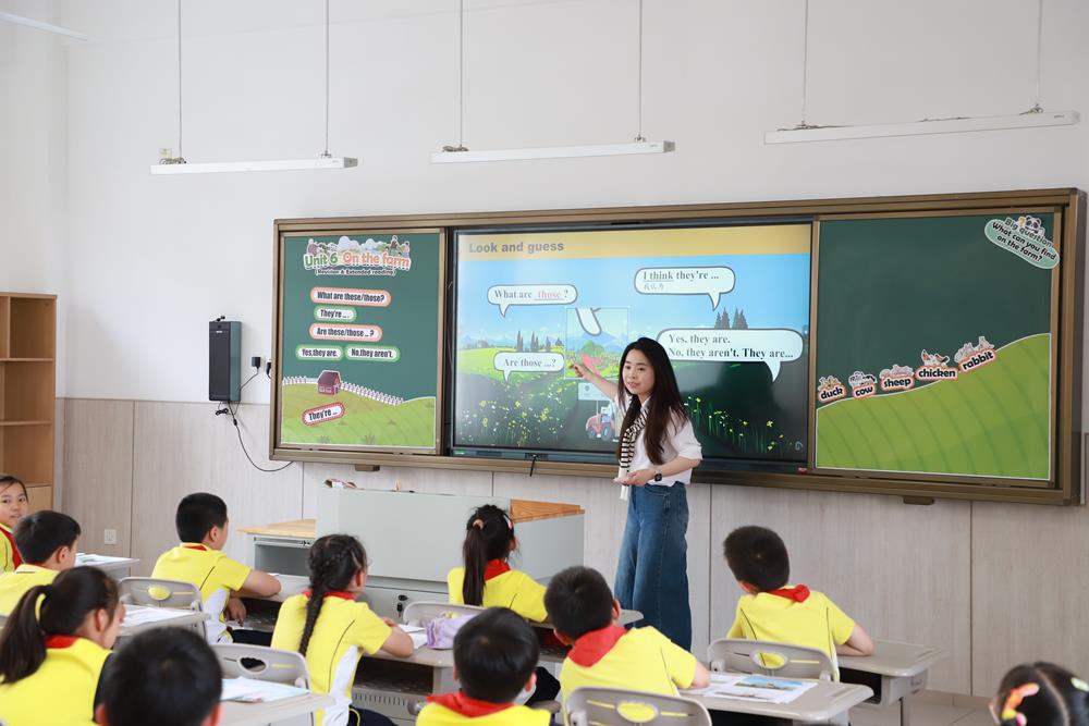 星浦小學張艷瑩老師執(zhí)教《3BUnit7Onthefarm》(Revision&Extendedreading),以Coco的農(nóng)場探索為主線,融合復(fù)習與拓展。通過情境對話鞏固目標語言;繪本閱讀結(jié)合匹配任務(wù)與問題討論提升邏輯思維;合作項目“建設(shè)農(nóng)場”融入空間認知與寫作實踐??偨Y(jié)歌謠升華“農(nóng)場之趣”,在寓教于樂中實現(xiàn)語言目標與情感目標,兼具實效性與趣味性。