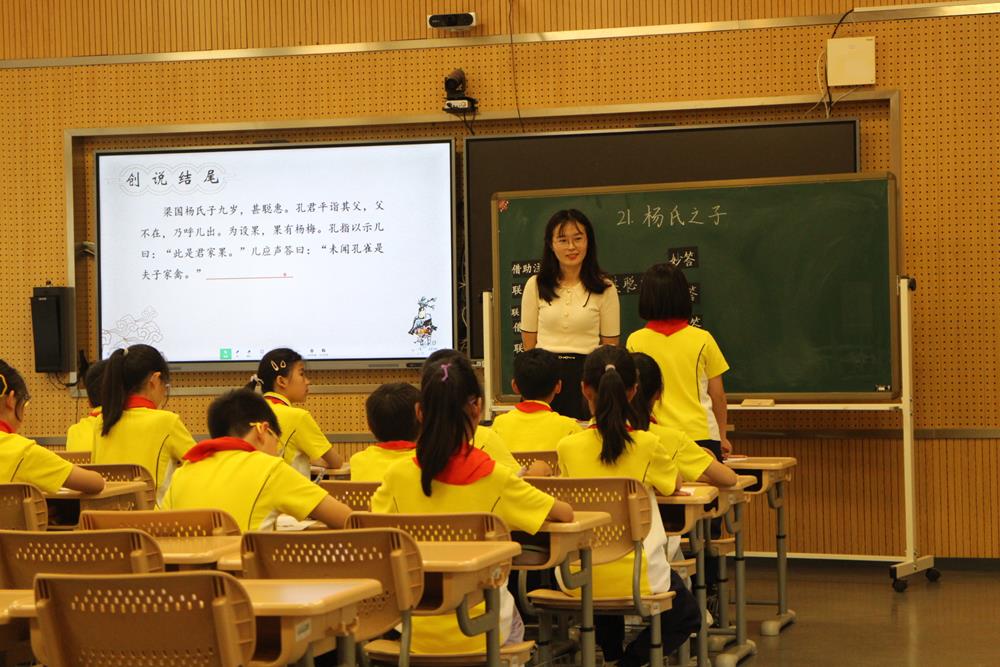 文萃小學羅敏珺老師執(zhí)教《楊氏之子》一課,以文言文經(jīng)典文本為載體,通過趣味導(dǎo)入激活學生思維,借助字詞解析、情境演繹、小組思辨等環(huán)節(jié),帶領(lǐng)學生領(lǐng)略楊氏之子應(yīng)答的機智與語言藝術(shù),感悟古人的智慧與禮儀。注重讀寫結(jié)合,在解讀文本后引導(dǎo)創(chuàng)作類似機智對話,鍛煉學生語言運用能力,激發(fā)對文言文學習的濃厚興趣。
