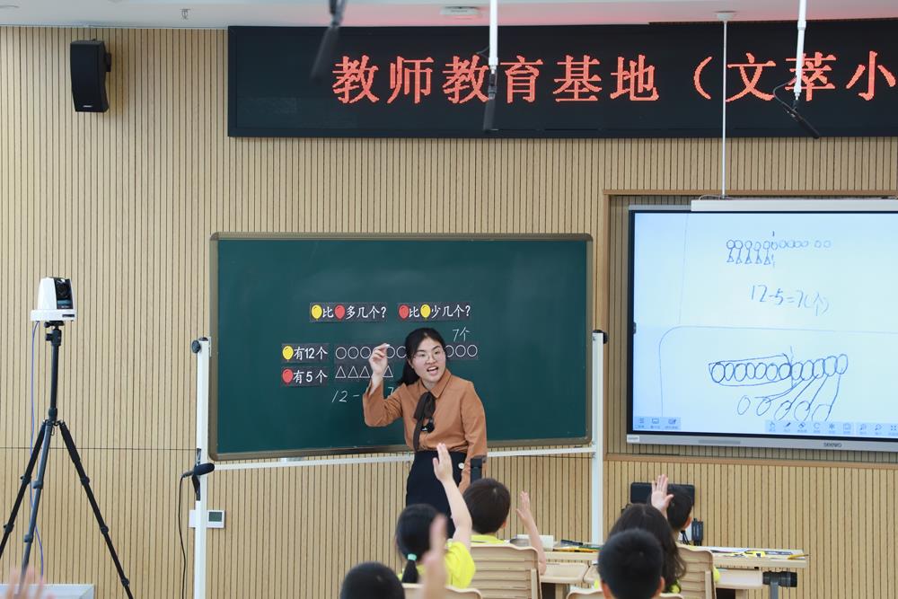 星浦小學張紅艷老師執(zhí)教《求一個數(shù)比另一個數(shù)多(少)幾》一課,深入探討了實際問題中的數(shù)量關(guān)系,重點在于通過運算的意義來構(gòu)建相應(yīng)的理解。此次學習首次將減法的意義從“部分與總數(shù)的關(guān)系”拓展到兩個數(shù)量的比較,對學生思維提出了新的挑戰(zhàn)。在教學過程中,張老師引導(dǎo)學生逐步經(jīng)歷從“比多”到“比少”,再到“多樣變式問題”的探究,有效促進了學生思維的飛躍,使其對相差關(guān)系問題的理解逐步深化。