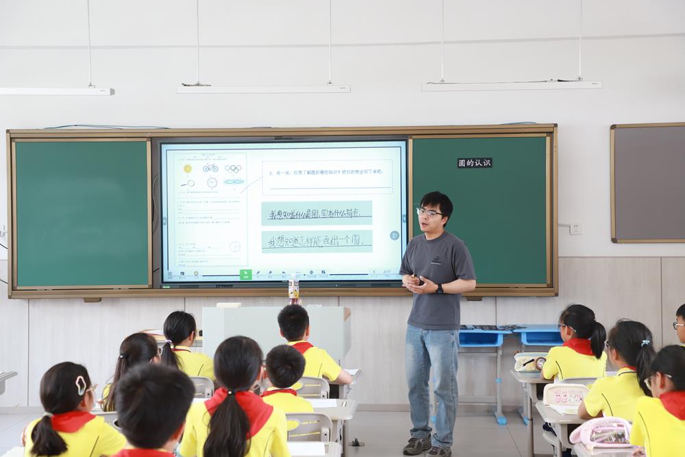 婁葑實驗小學吳昊老師執(zhí)教的《圓的認識》一課,以學生前學經(jīng)驗為起點,圍繞圓的本質(zhì)特征展開探究。課程通過三個層次遞進:首先引導(dǎo)學生對比圓與多邊形的異同,建立曲線圖形認知;其次以圓規(guī)畫圓為切入點,通過試錯、示范、實踐掌握“定點、定長、旋轉(zhuǎn)”的核心原理;繼而組織折紙測量活動驗證圓的對稱性、半徑直徑關(guān)系等重要性質(zhì),培養(yǎng)實證意識;最后拓展生活化畫圓方法和數(shù)學文化滲透。整節(jié)課貫穿操作實踐與思維探究,構(gòu)建起完整的圓概念認知體系。