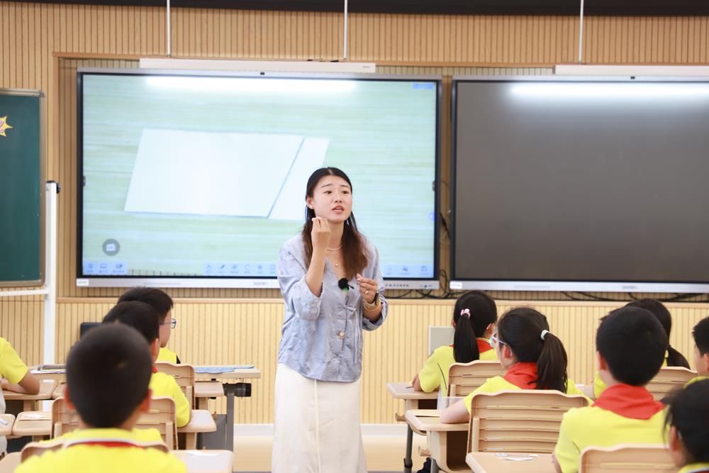 文萃小學的周佳琪老師在《平行四邊形的面積》一課中,從回顧長方形面積公式的推導(dǎo)過程入手,揭示了面積的本質(zhì)概念。她引導(dǎo)學生勇于猜想平行四邊形的面積,并通過“數(shù)方格”的活動,讓學生親自動手數(shù)一數(shù)平行四邊形的面積,逐步發(fā)現(xiàn)并驗證結(jié)論。這一過程不僅加深了學生對平行四邊形面積公式推導(dǎo)的理解,還強調(diào)了轉(zhuǎn)化思想在數(shù)學學習中的重要性。